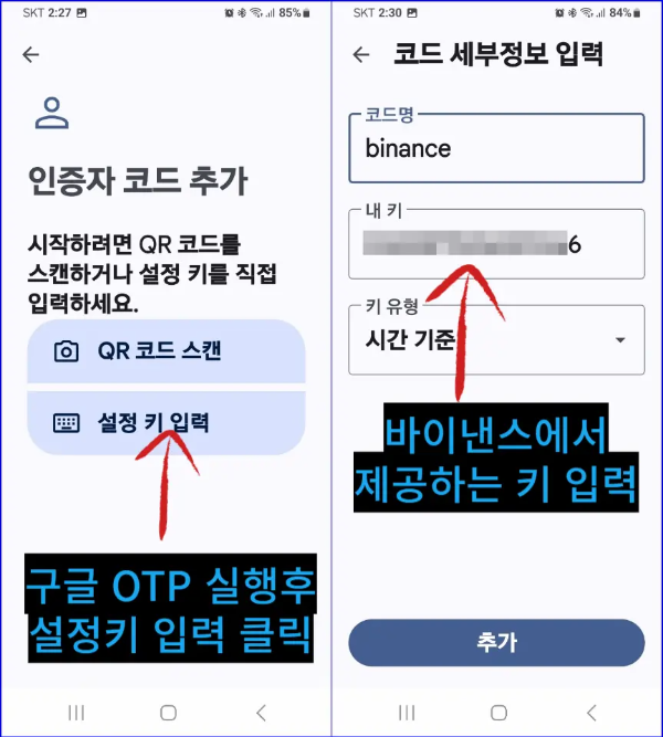 - 바이낸스에서 제공하는 설정 키를 입력합니다.