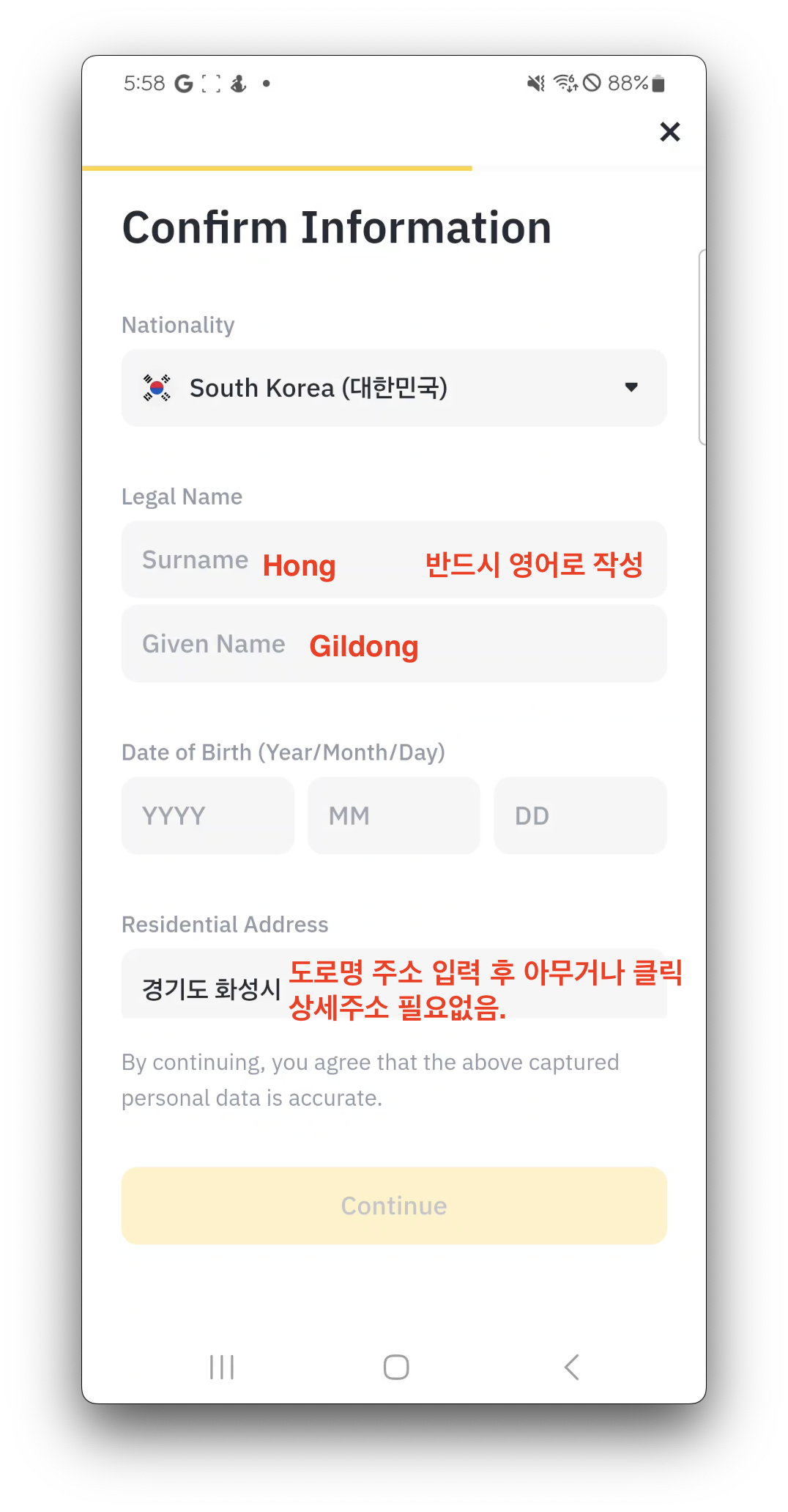 - 안면인식까지 완료되면 개인정보 입력 단계로 넘어갑니다.