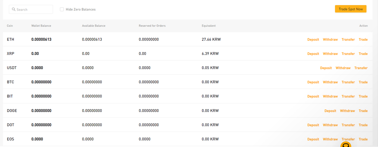 국내 코인 거래소에서 XRP (리플) 을 구매하여 옮겨 줍니다. (수수료가 1회 1리플로 저렴함) 먼저 바이비트 홈페이지 Assets 에서 Spot Account 로 이동합니다.개인 리플 지갑을 만든후 지갑 주소와 XRP 입금 태그 및 메모가 나오는데요 그걸 복사해준 뒤 업비트에서 리플을 구매하셔서 출금해줍니다 XRP 지갑 주소에는 출금 주소를 적어야 하고 XRP 입금 태그/메모란에는 데스티네이션 태그를 적어야 합니다