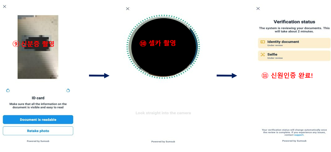신분증 촬영 - 셀카 촬영 - 바이비트 신원인증 완료!