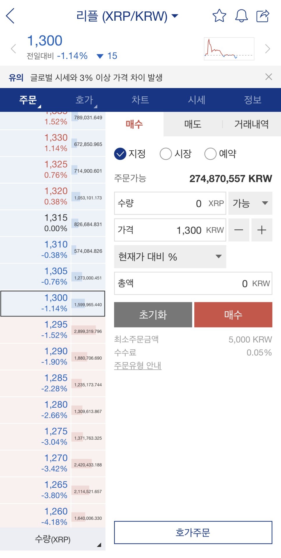- 지정가 : -0.025% - 시장가 : 0.060% |