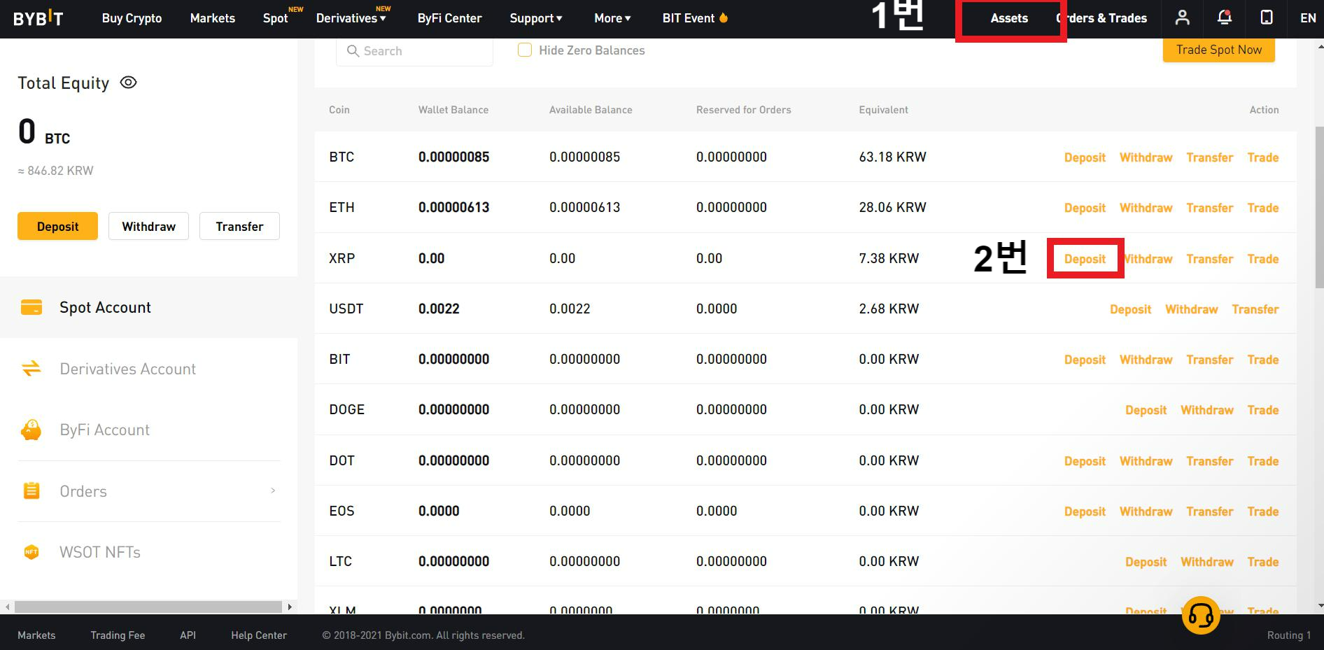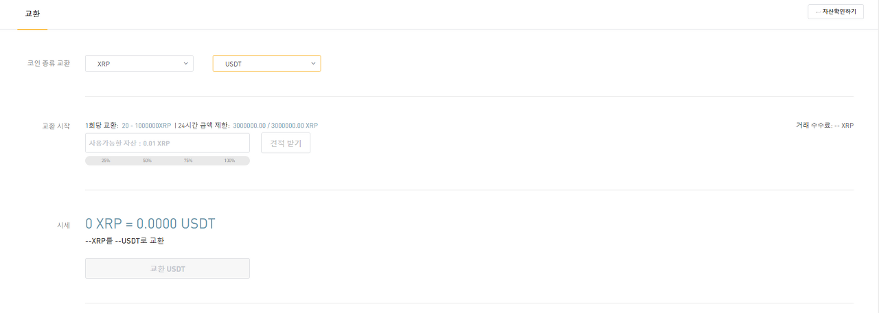 업비트 에서 바이비트 리플 지갑이동 이후 바이비트에서 리플 코인이 입금된걸 확인하면 마이페이지 교환을 통해서 현금과 같은 역할을 하는 USDT로 교환을 먼저합니다