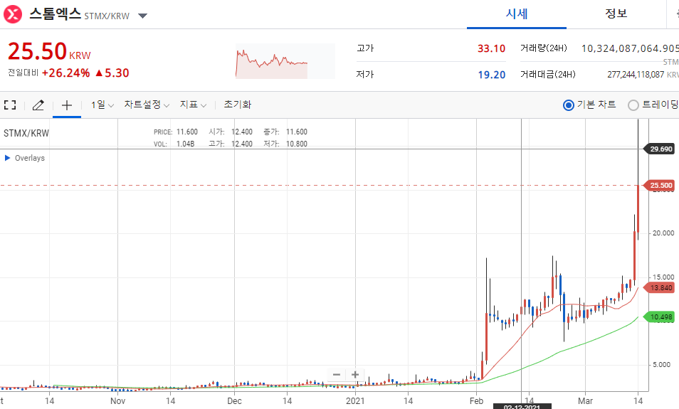 스톰엑스 코인 또한 3월 15일 전일대비 30%가량 상승한 모습을 보여줬습니다