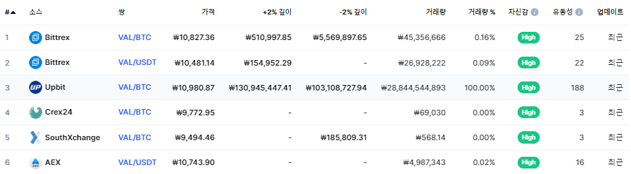 밸리디티코인은 비트렉스에 상장되어 있지만 업비트에서만 거래가 되고 있으며 바이낸스,코인베이스 게이트아이오 FTX 쿠코인 등 세계 10대 거래소에도 상장되지 않았으며 업비트에서 투자 유의종목으로도 지정된적이 있었던 코인 입니다