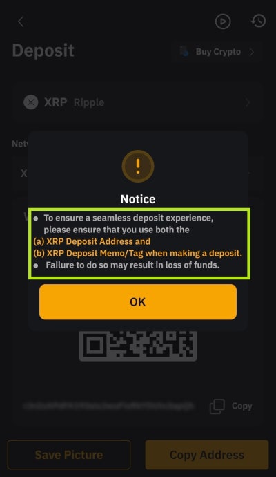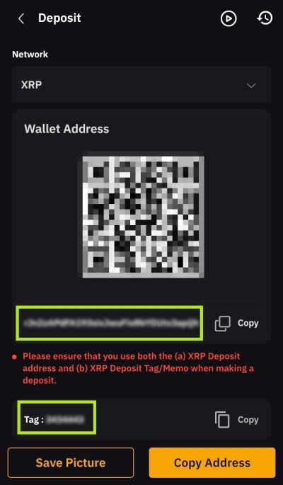 그럼 이렇게 바이비트 리플 입금주소와 태그를 확인할수 있게 된다. 그럼 여기서 확인한 태그와 주소를 각각 복사를 해준 후에