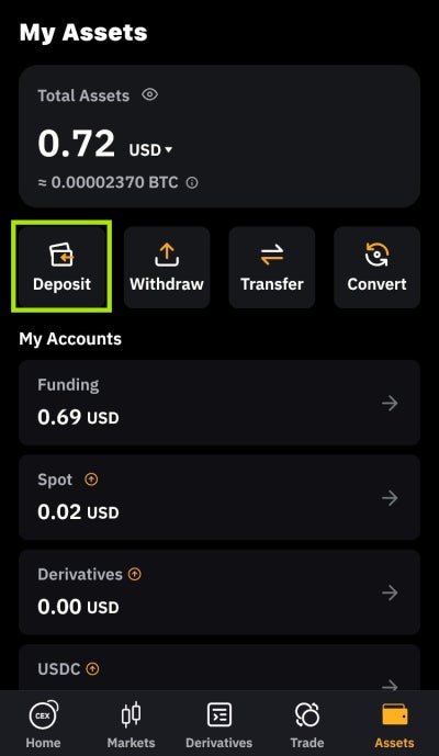교환방법은 'asset'-'convert'에서 가능하며 'Transfer'를 통해서 현물계정 자산을 선물계정으로 이동만 하면 모든 단계가 끝납니다.